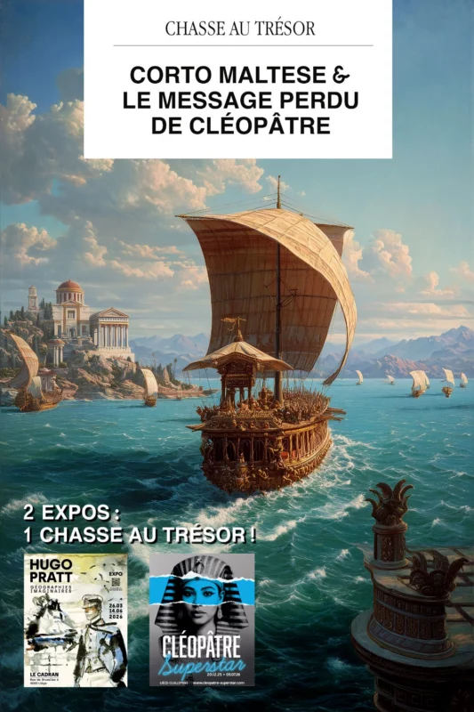 À l’occasion des expositions Hugo Pratt – Géographies imaginaires et Cléopâtre Superstar, Liège propose une expérience originale qui mêle culture et jeu : une chasse au trésor immersive pensée pour tous les publics.