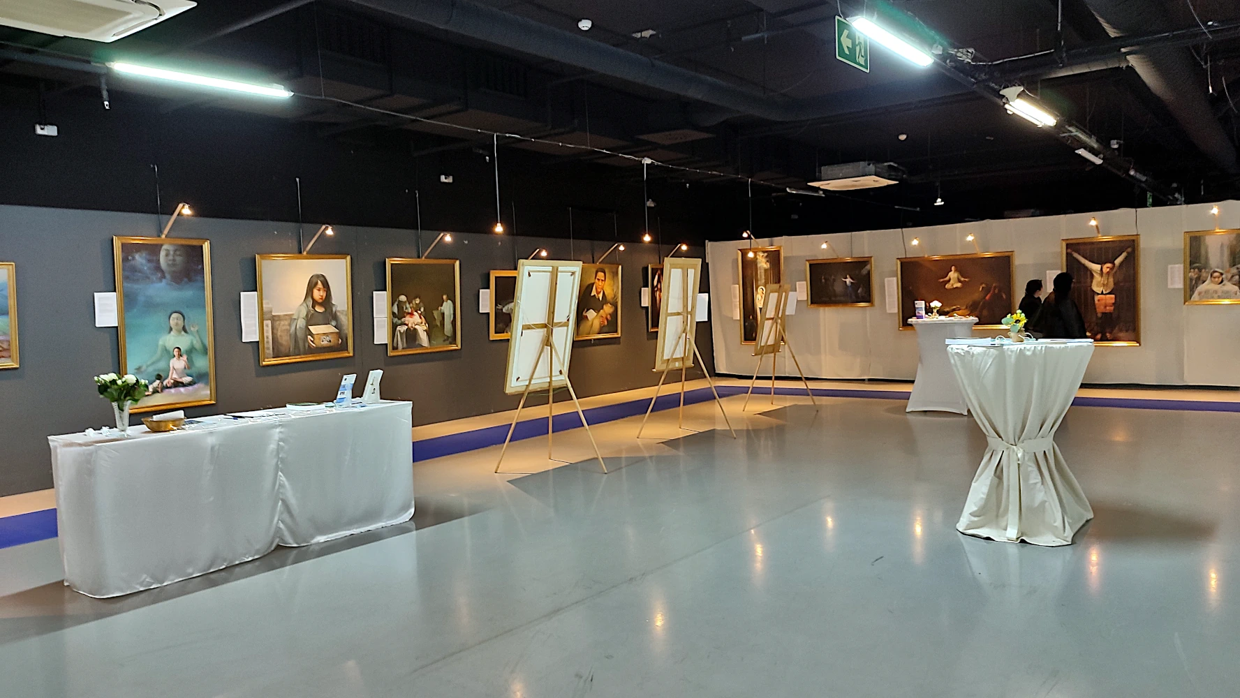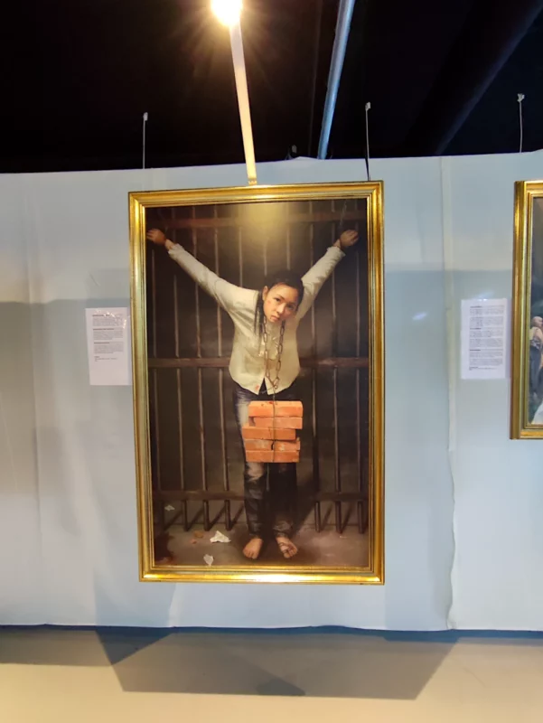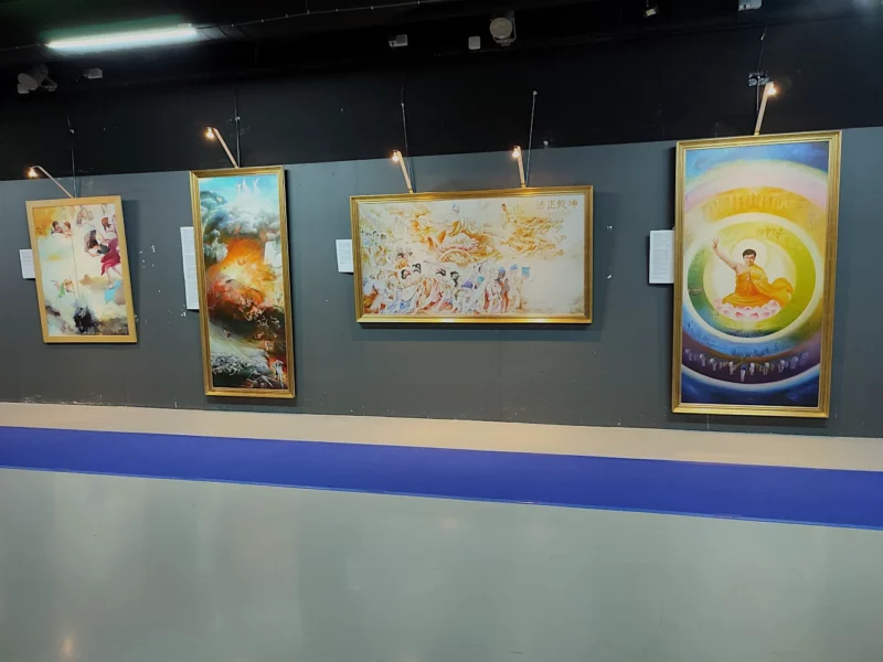 Fondée sur les principes de Vérité (Zhen), Compassion (Shan) et Tolérance (Ren), l’exposition s’articule autour de scènes de méditation, de moments d’élévation spirituelle, mais aussi de représentations de la violence institutionnelle et de l’arbitraire. Le contraste entre sérénité intérieure et brutalité extérieure constitue l’un des ressorts visuels majeurs du parcours.