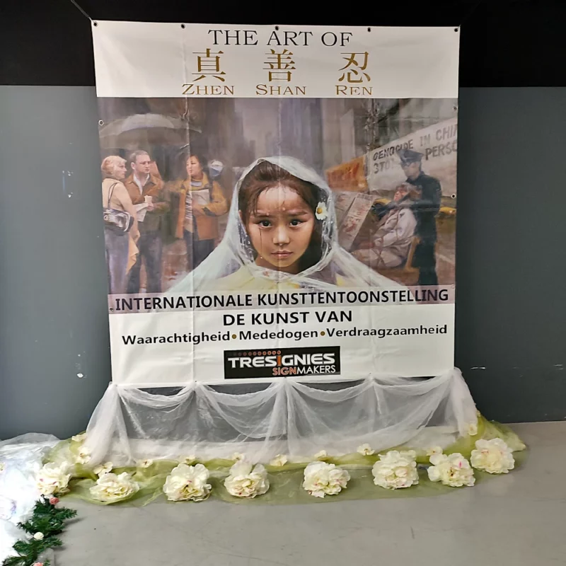 Présentée à Liège jusqu’à la mi-janvier 2026 à l’Ilôt Saint-Michel, l’exposition « L’Art de Zhen Shan Ren » réunit des œuvres figuratives réalisées par des artistes d’origine chinoise qui ont fait le choix d’un langage pictural lisible et narratif pour aborder une réalité largement absente des images officielles : la répression du mouvement spirituel Falun Gong en Chine depuis la fin des années 1990. À travers la peinture, ces artistes interrogent le rôle de l’art comme espace de mémoire et de visibilité lorsque l’information est contrôlée ou interdite.