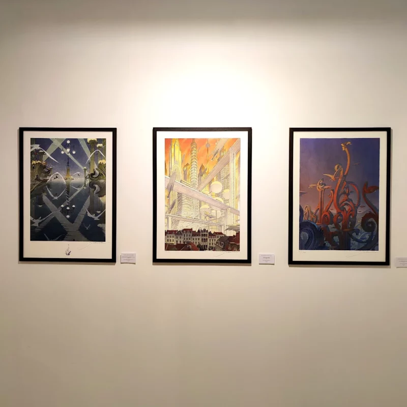 Dès les premières œuvres accrochées aux murs, je me suis senti happé par ces villes impossibles, architectures démesurées et perspectives vertigineuses qui caractérisent si bien le style de Schuiten. À travers une sélection raffinée de tirages d’art signés et numérotés, l’exposition rend hommage à une décennie de collaboration entre l’artiste et Atlantic 12, maison bruxelloise spécialisée dans la production de tirages en édition limitée.