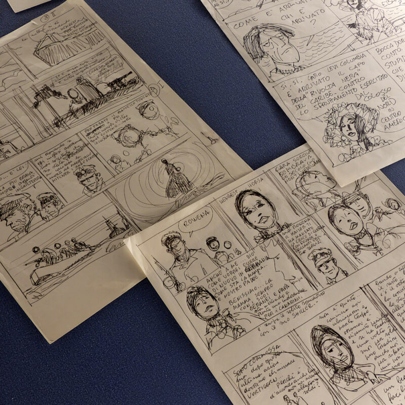 L’exposition déploie un panorama particulièrement complet de l’œuvre d’Hugo Pratt. Planches originales, aquarelles, carnets, archives et objets personnels dialoguent avec des dispositifs audiovisuels et des installations scénographiques soignées. L’ensemble compose une traversée sensible, où le regard se perd autant dans la finesse du trait que dans la richesse des récits.