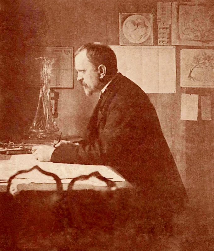 Né à Paris en 1855, Léon Ledru rejoint le Val Saint-Lambert en 1888. En 1897, il prend la direction du Service des créations, un poste stratégique qu’il occupera pendant près de trois décennies.