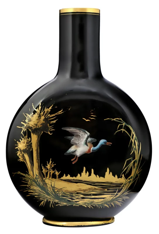 Avec son col élancé et sa panse délicatement ornée, il illustre parfaitement la rencontre entre maîtrise technique, inspiration naturaliste et ambition artistique.