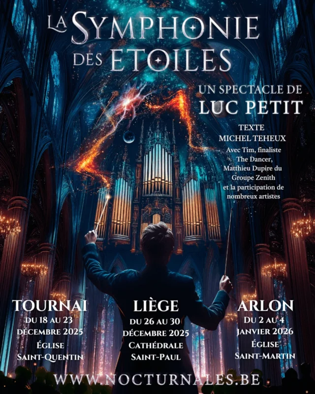 À l’approche de Noël, la Cathédrale Saint-Paul se transformera en écrin céleste. Du 26 au 30 décembre 2025, La Symphonie des Étoiles, une création immersive signée Luc Petit et produite par Les Nocturnales, invitera le public liégeois à lever les yeux vers le ciel et à se laisser emporter par un voyage poétique entre lumière, musique et émotions.