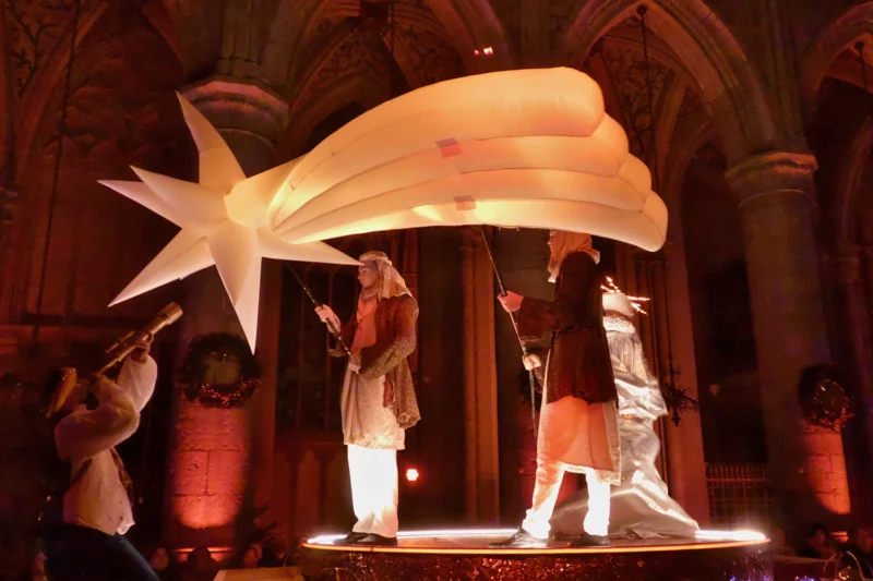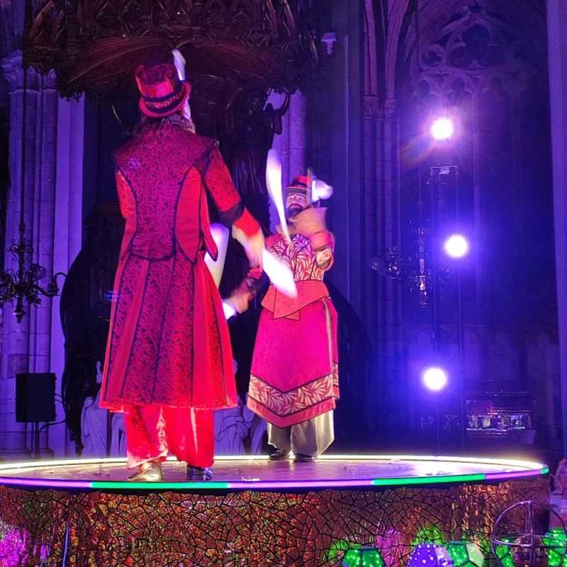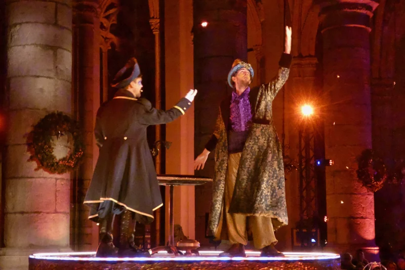 Dès les premières minutes, la magie opère. L’architecture monumentale de la cathédrale devient un véritable partenaire de jeu, sublimée par un travail de lumières précis et enveloppant, qui fait naître constellations et paysages célestes sous les voûtes gothiques. La musique, dialogue avec l’espace et accompagne avec justesse chaque tableau.