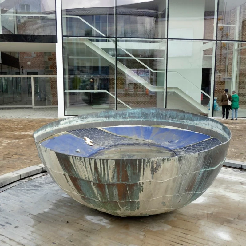 C’est le cas de la fontaine de la place Saint-Étienne, œuvre du plasticien Emile Desmedt. Installée en 2007 à l’arrière des Galeries Saint-Lambert, cette sculpture contemporaine, reconnaissable à sa forme ouverte évoquant une paume de main, fait aujourd’hui l’objet de travaux d’entretien nécessaires.
