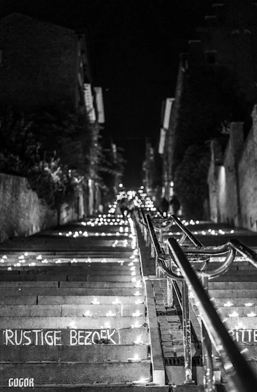 Point d’orgue de la soirée, la Montagne de Bueren se pare de centaines de bougies, offrant un spectacle à la fois simple, spectaculaire et profondément émouvant.