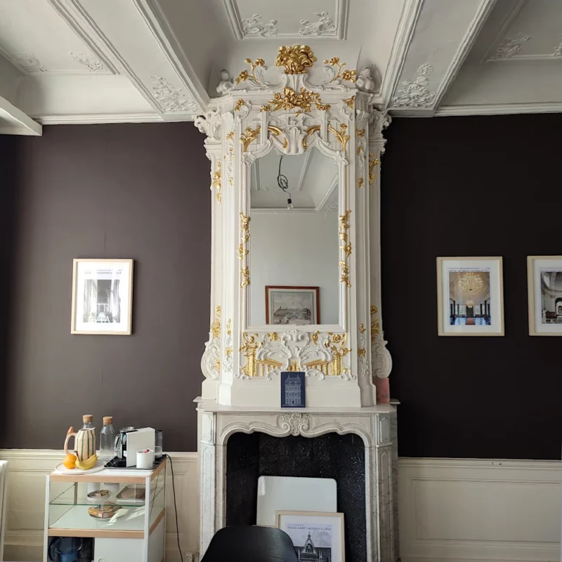 On croyait avoir tout compris de la Maison Lem – de Meuse en admirant sa façade. Erreur. Ce n’était que le prologue. Car derrière la porte, un autre monde s’ouvre : un univers de stucs étincelants, d’escalier théâtral et de peintures vibrantes signées Coclers. Ici, le XVIIIᵉ siècle ne se visite pas : il se raconte à voix haute.