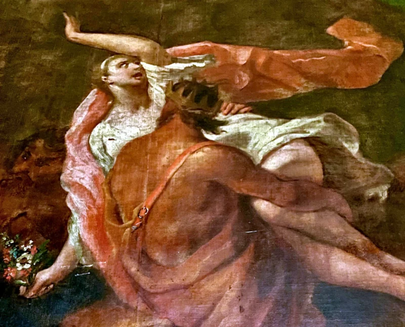 Enfin, Proserpine est enlevée par Pluton, déchirée entre vie et mort, tandis que Bacchus découvre Ariane abandonnée sur l’île, la relève, l’emporte, comme un sauveur inattendu.