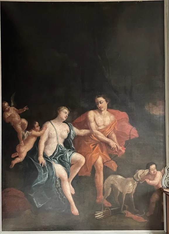Plus loin, Vénus retient Adonis, en vain. Elle sait que le sanglier envoyé par Mars l’attend. Lui ne voit que la gloire de la chasse. Elle voit déjà la tragédie. Ce n’est pas une scène galante : c’est un adieu.